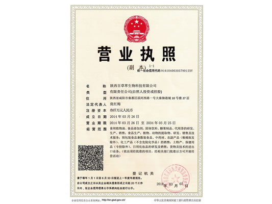 陜西百草萃生物科技有限公司,位于陜西省咸陽(yáng)市秦都區(qū)濱河西路1號(hào)大秦御港城,公司成立于1996年,主要從事天然植物種植、研發(fā)、生產(chǎn)、加工、銷(xiāo)售為一體的高科技企業(yè)。主營(yíng)醫(yī)藥原料、保健品原料、化妝品原料,精細(xì)化工原料。公司致力于人類健康保護(hù)事業(yè)“ 以科技為動(dòng)力,以質(zhì)量求生存” 的本質(zhì),依托陜西高新科技技術(shù)人才和科研優(yōu)勢(shì),已形成多學(xué)科、全方位、高層次的技術(shù)管理精英團(tuán)隊(duì)。充分利用秦巴山區(qū)的天然藥物資源,歷經(jīng)多年發(fā)展為打造百草萃生物品牌奠定了基礎(chǔ)。
